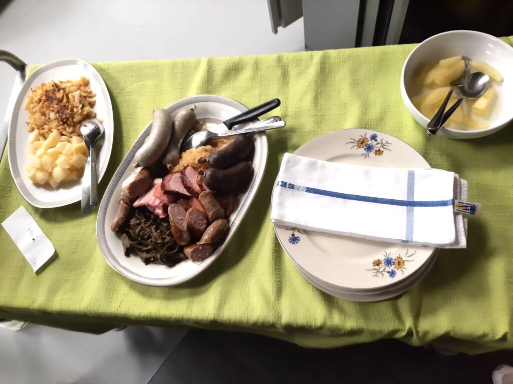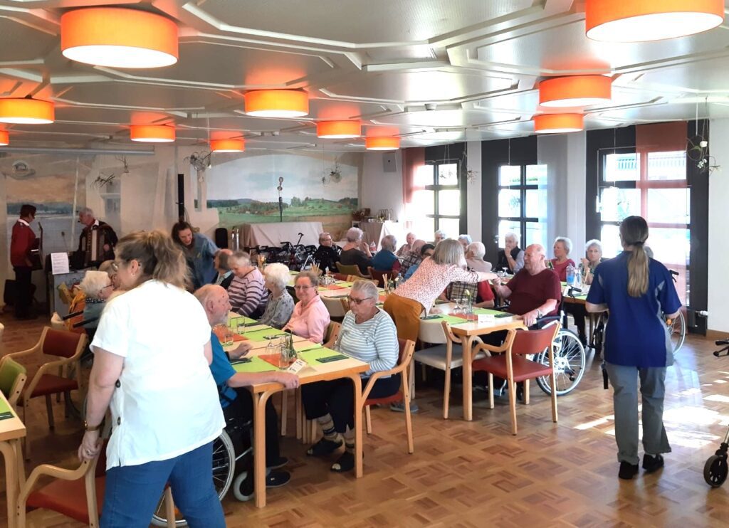 «Heute Metzgete» hiess es am 4. März einmal mehr im Restaurant Eulachtal. Bewohnende, Mitarbeitende und Gäste waren eingeladen, es sich am traditionellen Anlass gut gehen zu lassen. Das klassische Essen mit Blut- & Leberwürsten, Rippli, Sauerkraut und vielem mehr wurde ebenso genossen, wie die musikalische Unterhaltung von «Sylv & Dölf», die sogar den einen oder die andere zu einem Tänzchen anregte.